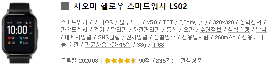 샤오미 헬로우 스마트워치 LS02 : 구매링크