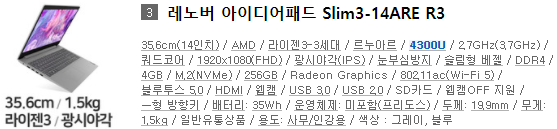 레노버 아이디어패드 Slim3-14ARE R3 : 구매링크