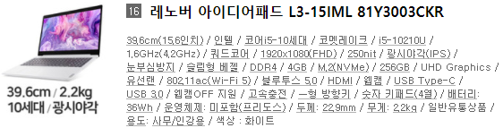 레노버 아이디어패드 L3-15IML 81Y3003CKR : 구매링크