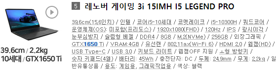 레노버 게이밍 3i 15IMH I5 LEGEND PRO : 구매링크