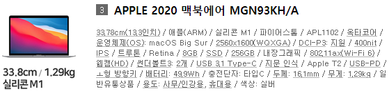 Apple 2020년 맥북 에어 13 (M1 칩셋 8코어 CPU) : 구매링크
