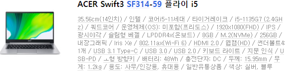 ACER Swift3 SF314-59 플라이 i5 : 구매링크