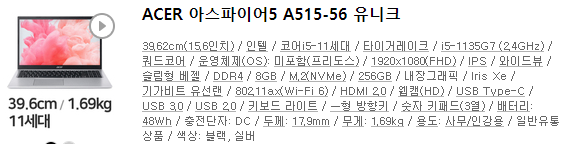 ACER 아스파이어5 A515-56 유니크 : 구매링크