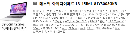 레노버 아이디어패드 L3-15IML 81Y3003GKR : 구매링크
