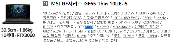 MSI GF시리즈 GF65 Thin 10UE-i5 : 구매링크