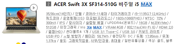 ACER Swift 3X SF314-510G 비주얼 i5 MAX : 구매링크