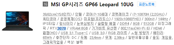 MSI GP시리즈 GP66 Leopard 10UG : 구매링크