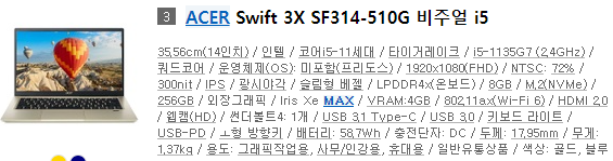 ACER Swift 3X SF314-510G 비주얼 i5 : 구매링크