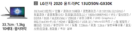 LG전자 2020 울트라PC 13UD50N-GX30K : 구매링크
