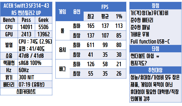 [리뷰] ACER Swift3 SF314-43 R5 씬스틸러2 UP