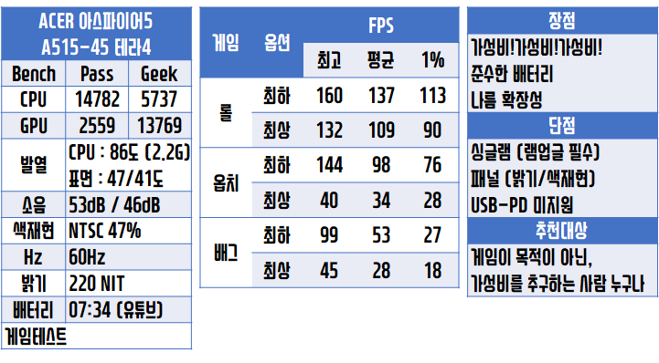 [리뷰] ACER 아스파이어5 A515-45 테라4 (SSD 256GB)